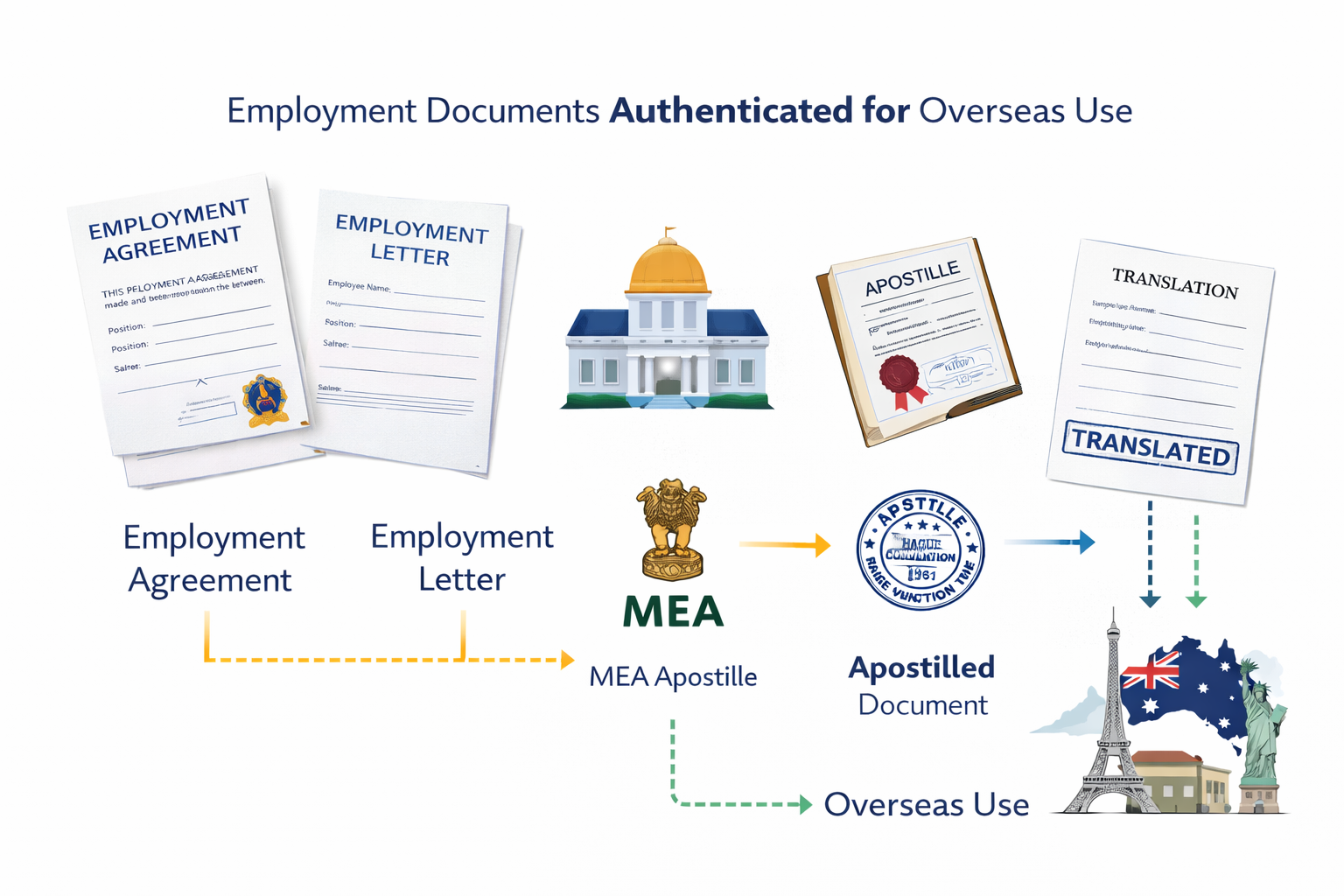 - Apostille for Australia employment visa documents like experience letters and police clearance certificates